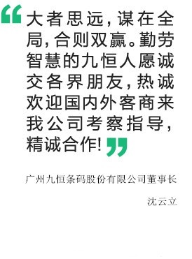 二十年的創(chuàng)業(yè)歷程,九恒始終秉承“誠(chéng)信、團(tuán)結(jié)、學(xué)習(xí)、開(kāi)拓”的企業(yè)精神,遵循"卓越服務(wù)是我們的承諾,零缺陷是九恒的追求”的企業(yè)質(zhì)量方針,使九恒從無(wú)到有、從小到大、如今已成為中國(guó)最具知名度的條碼印刷企業(yè),隨著全球經(jīng)濟(jì)的一體化,中國(guó)企業(yè)正面臨著巨大的挑戰(zhàn)和機(jī)遇,在新一輪競(jìng)爭(zhēng)中,行業(yè)將按全球競(jìng)爭(zhēng)力標(biāo)準(zhǔn)重新洗牌,只有最優(yōu)秀的企業(yè)才能在未來(lái)的競(jìng)爭(zhēng)中生存。